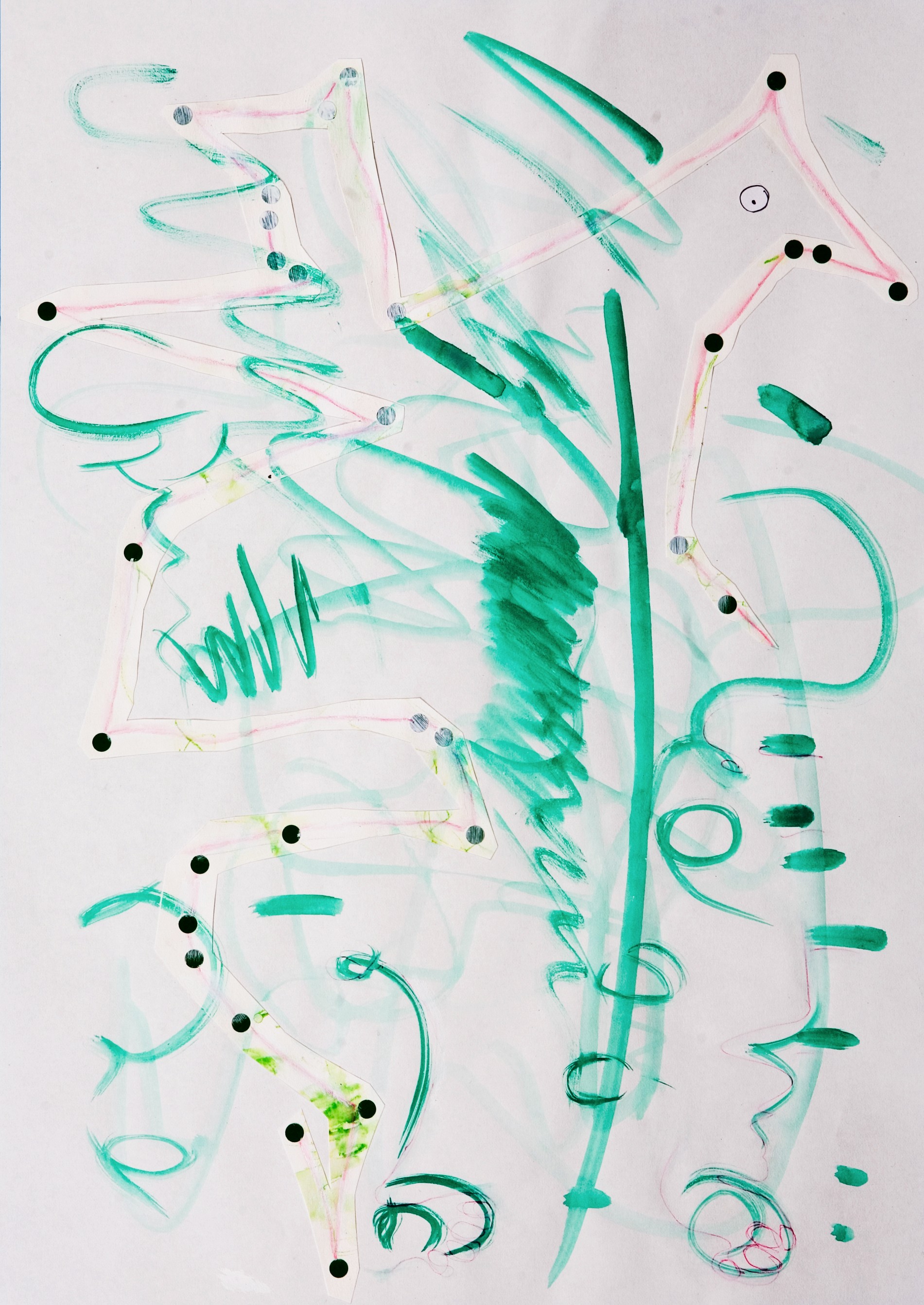 Gouache, watercolor pencil, ink and collage on paper
